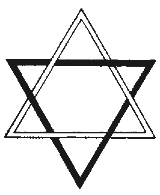 son segundos después la serpiente. Este es el llamado “Sello de Salomón”, porque según se suponía, él lo usó para tratar con los genios que obedecían sus órdenes. En la tradición musulmana, existe un relato que describe como él encerró uno de los espíritus en el Mar Rojo, en una olla sobre cuya superficie estaba inscrito su sello. Pero este no es su origen. Poseo una moneda hindú muy antigua en la cual se ve el mismo sello rodeado por rayos solares, y ya tal figura se conocía en las primeras épocas en Indostán. Un par de Brahmines, amigos del escritor, afirman que dicha casta siempre lo conoció. En la página 260 de Isis sin Velo, H. P. Blavatsky expone el asunto muy bien, acompañándolo con dos diagramas que ilustran sus formas hindúes y judías. Estos triángulos simbolizan también la constitución septenaria del ser humano y de todas las cosas. Ellos tienen seis vértices y seis triángulos, encerrando un espacio central que es su séptima división, que en tal caso representa el séptimo principio o, más propiamente hablando, al pensador, que está en el universo y toca todas las cosas de los seis lados, por medio de los seis triángulos, cuyos vértices tocan los lados de la serpiente, o la gran rueda de la evolución que en y por medio de la cual el pensador gana experiencia de la naturaleza. El triángulo blanco, llamado el superior, se refiere al espíritu, mientras el inferior, o el obscuro, a la materia. Una vez entrelazados, significan, como se dice en la Bhagavad Gītā, que el espíritu y la materia son coeternos y siempre unidos. Por lo tanto, representan también los grandes opuestos en la naturaleza y en la mente, el bien y el mal, la noche y el día, masculino y femenino, libertad y esclavitud, frío y calor, estos grandes contrastes por medio de los cuales podemos al final encontrar la verdad. Esta figura desempeña un papel muy importante en la Cábala, por esa razón se dice que su representación en este mundo, es un reflejo o el reverso del verdadero triángulo en los mundos superiores. Sin embargo, esta declaración no transmite mucho, porque, al invertir la imagen en el papel, se notará que el triángulo obscuro se encuentra arriba, que en las escrituras místicas significa el reino de la magia negra. Probablemente, esto es lo que los cabalistas implicaban, ya que se deleitan en llamarle el obscuro mundo o el infierno.