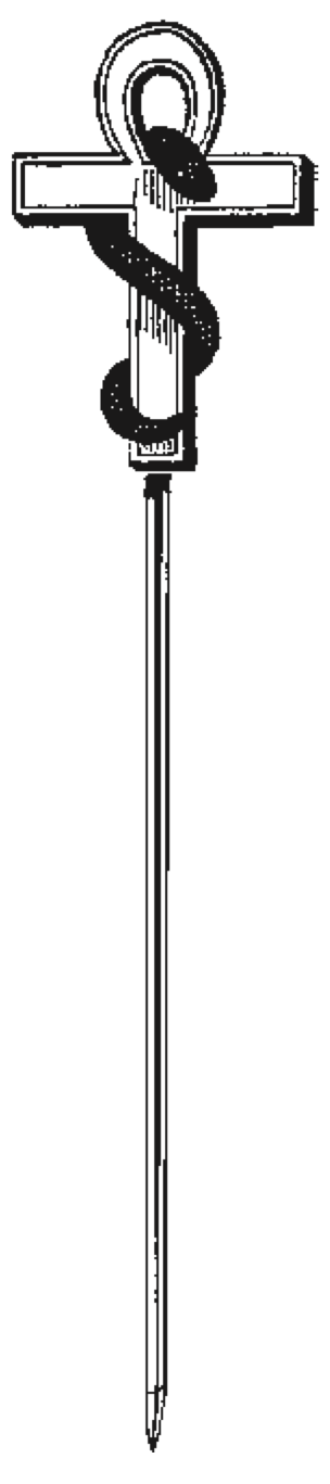 de la Sociedad. En 1875, este escritor, obedeciendo al pedido del Cnel. Olcott, dibujó un broche para que los miembros lo usaran. El joyero Maiden Lane fue el primero en hacerlo. Está constituido por la combinación de la serpiente con el tau egipcio, formando entonces las letras “S.T.”. La ilustración al lado, es una incisión sacada del antiguo dibujo el año pasado, cuando se empezó a usar los broches más que anteriormente. Un nutrido número de miembros americanos y europeos ahora los lleva. El Cnel. Olcott tiene uno que un teósofo de Nueva York le regalo un poco antes de la última convención londinense.